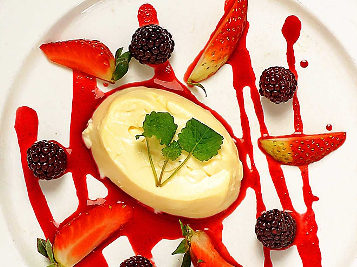Vaniljpannacotta med jordgubbar och björnbär