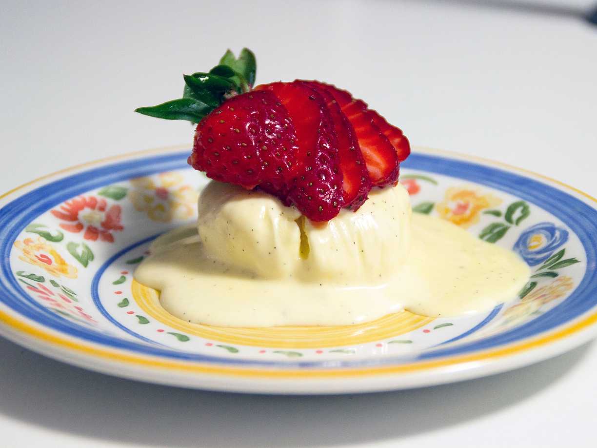 , serveras med färska jordgubbar