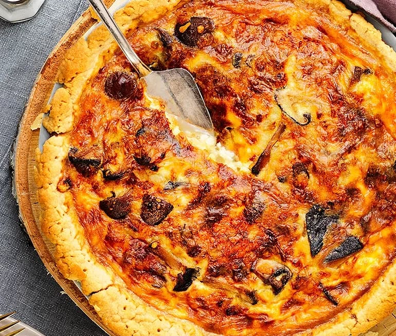 Svamppaj med varmrökt laxsallad