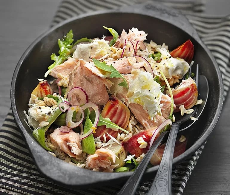 Quinoa- och bönsallad med fänkål och varmrökt lax