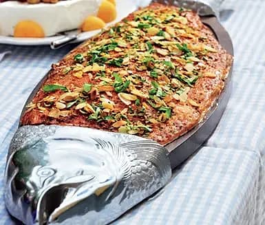 Varmrökt lax med pärlcouscous och chermoula