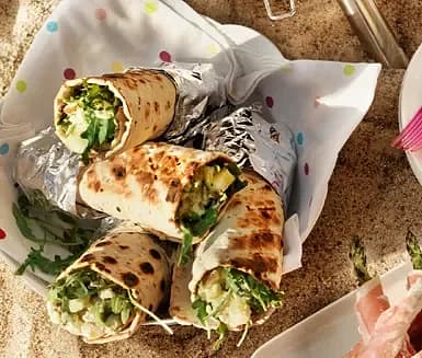 Tunnbrödsrulle i folie med Västerbottensost och ruccola