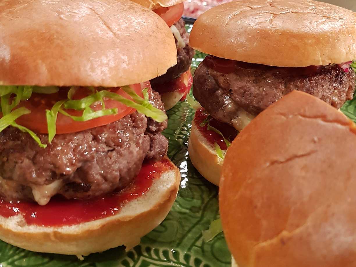 Burgare fyllda med västerbottensost