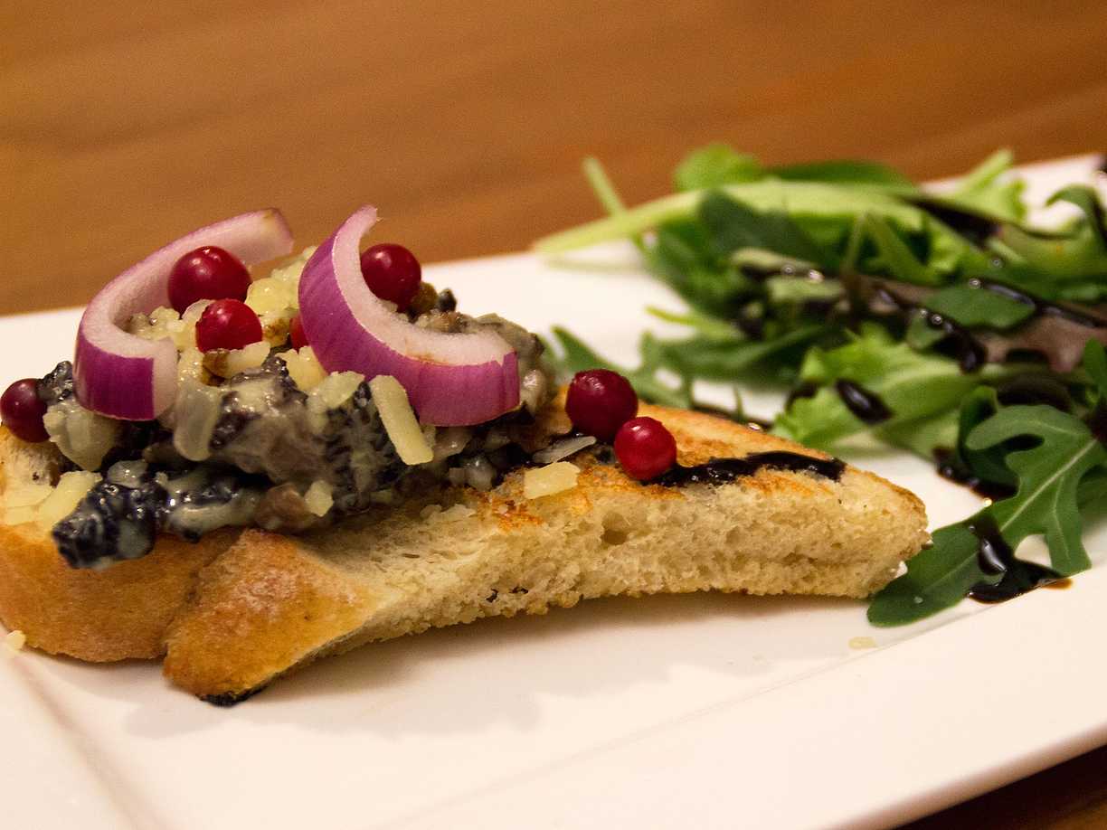 Krustader med västerbottensost, rom och rödlök