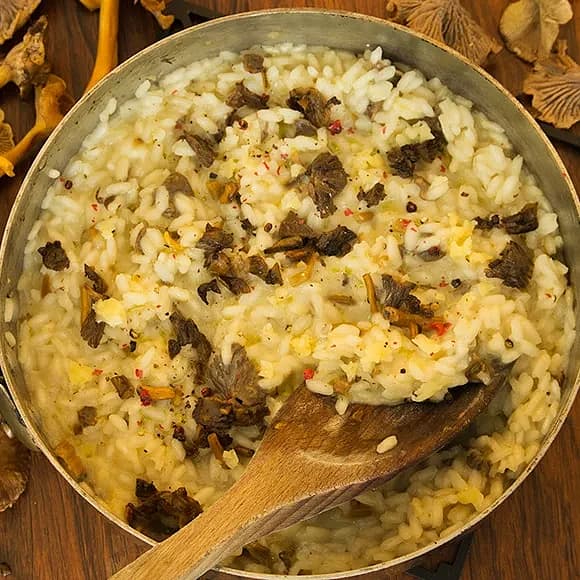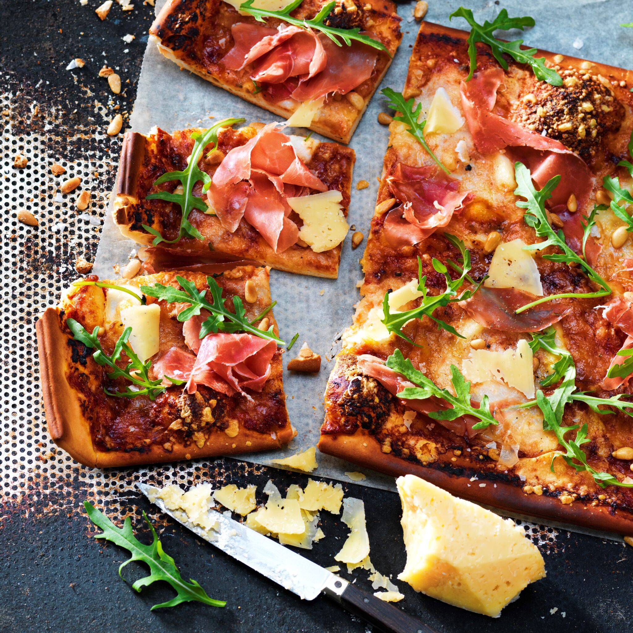 Kantarellpizza med västerbottensost och lufttorkad skinka