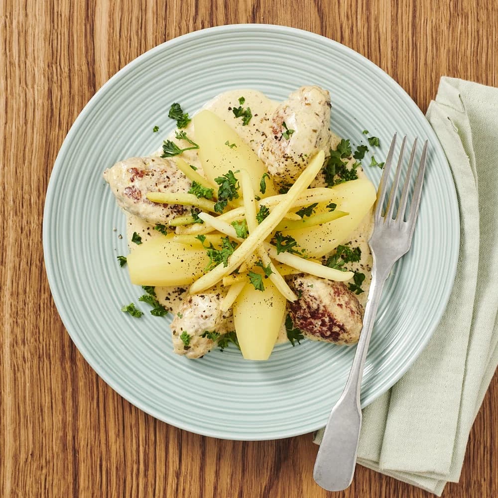 Järpar i krämig beasås och vaxbönor