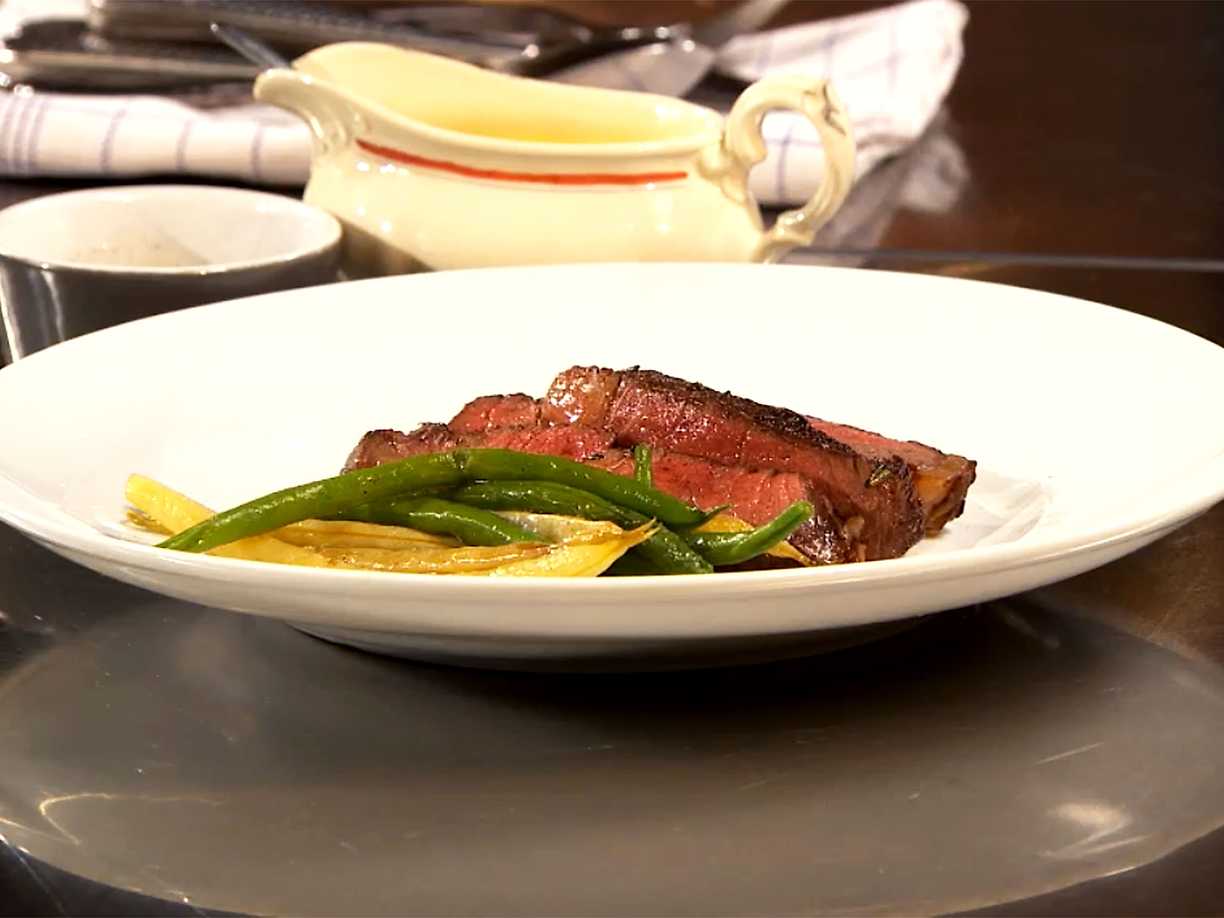 Côte de bouef med haricots verts, vaxbönor och bearnaisesås