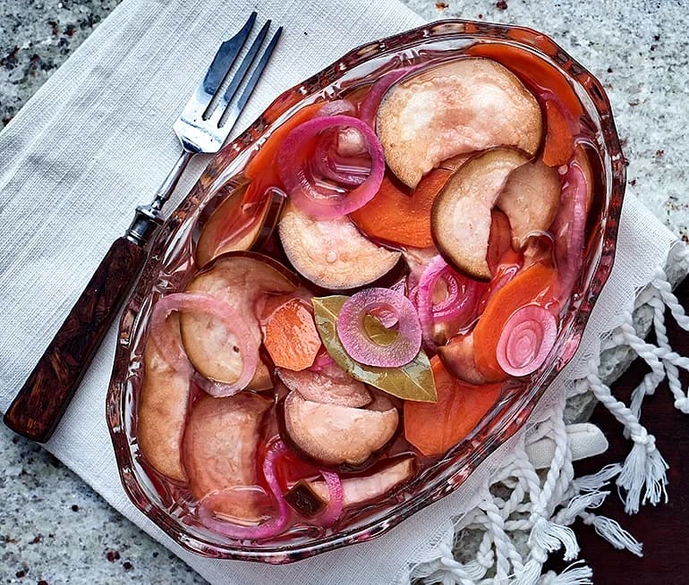 Vegansk inlagd sill av aubergine