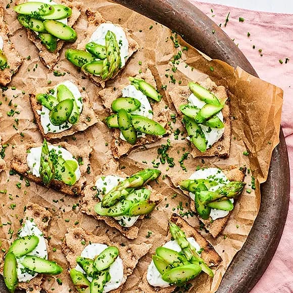 Veganska snittar - knäckebröd med sparris och citronkräm
