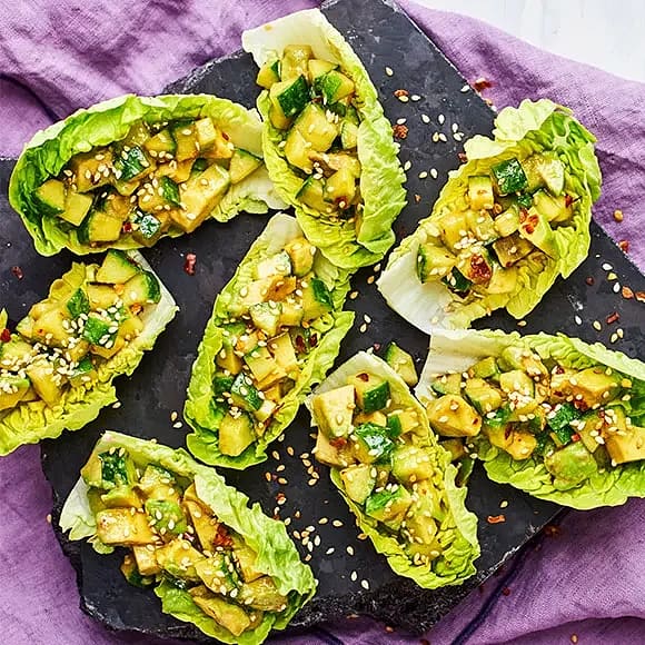 Veganska snittar - salladsblad med avokadosalsa