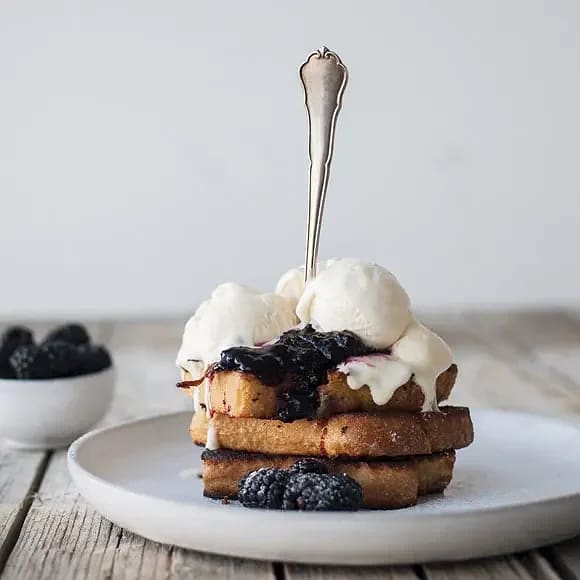Veganska fattiga riddare med vaniljglass och björnbärssylt