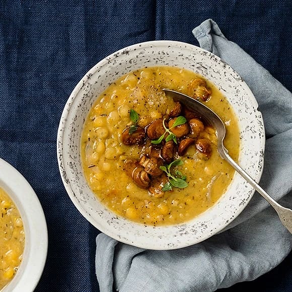 Vegansk ärtsoppa med rökig svamp