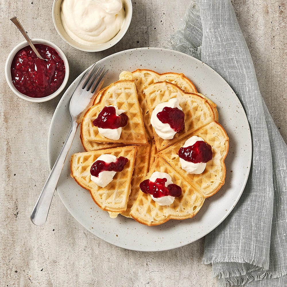Veganska och glutenfria våfflor med jordgubbssås