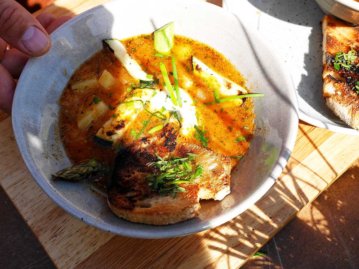 Vegansk linssoppa med grillade grönsaker