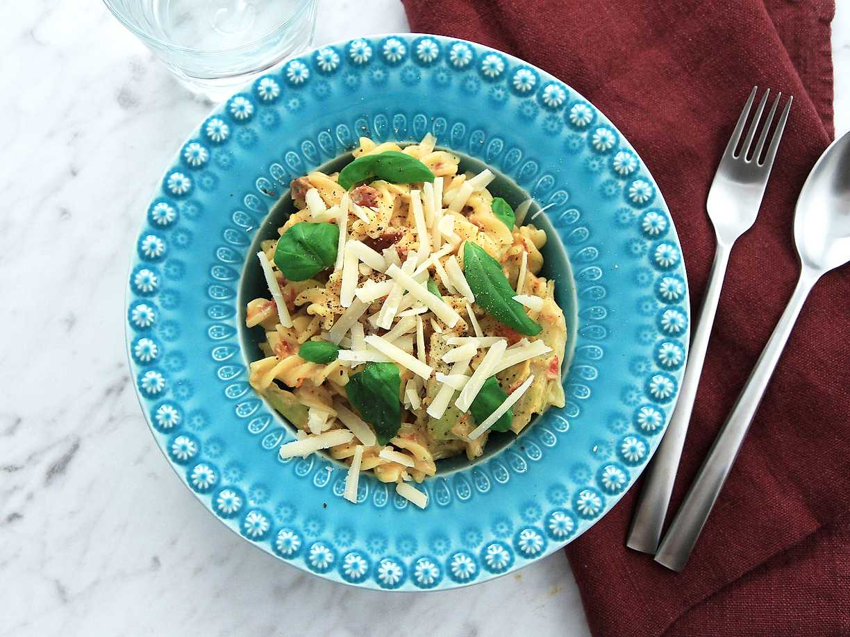 Pasta med vegansk sås - se & gör