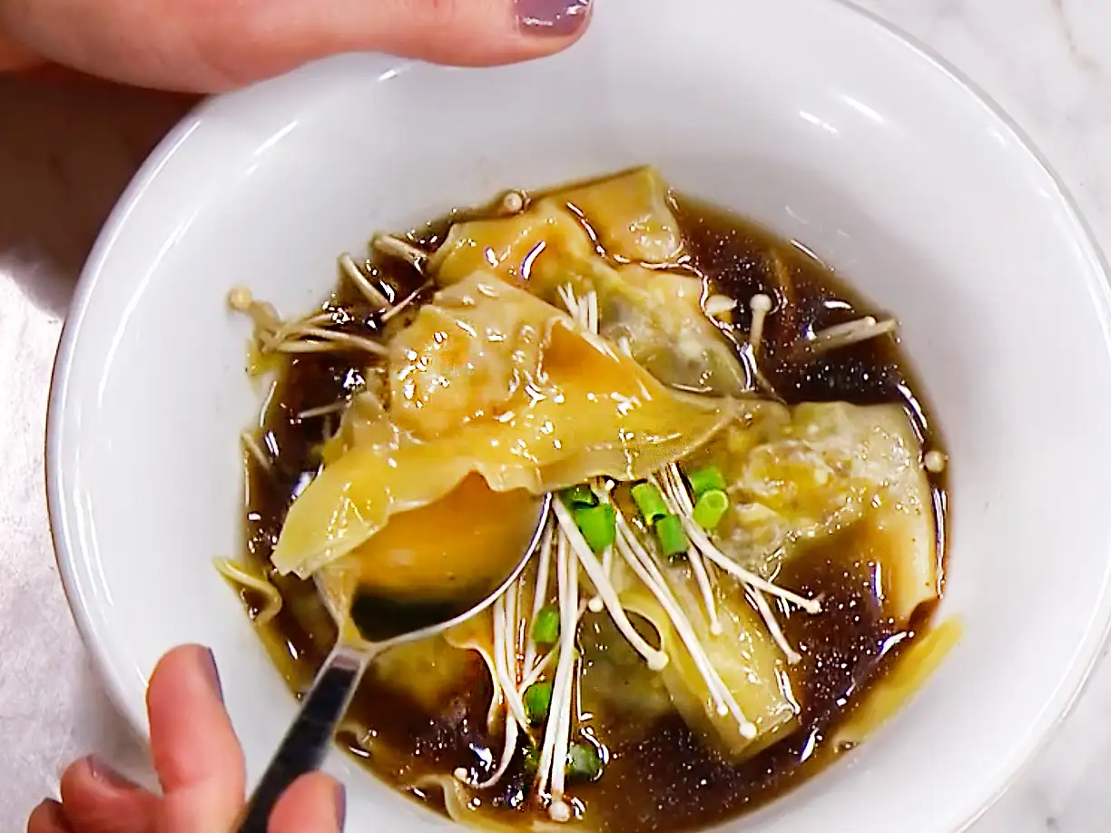 Vegetariska wontons med svampbuljong