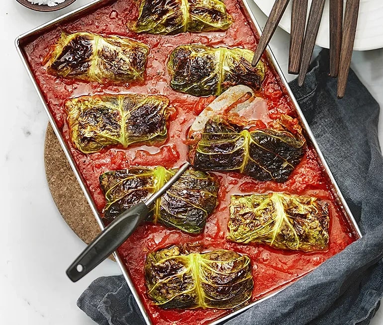 Vegetariska kåldolmar med parmesan i tomatsås