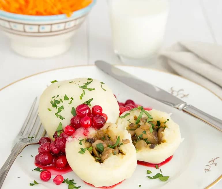 Vegetariska kroppkakor med rårörda lingon