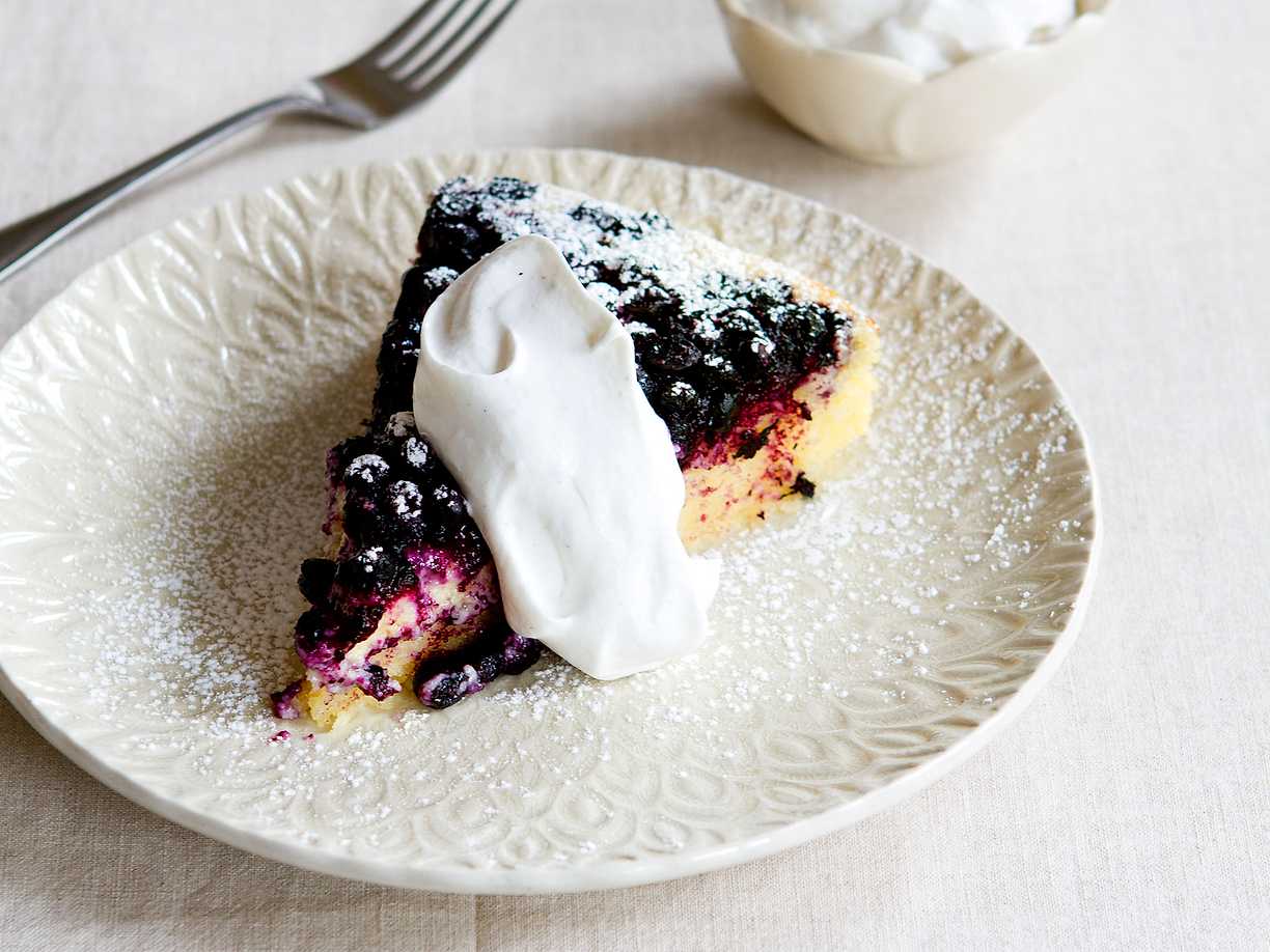 Vegansk blåbärskaka med kardemummagrädde
