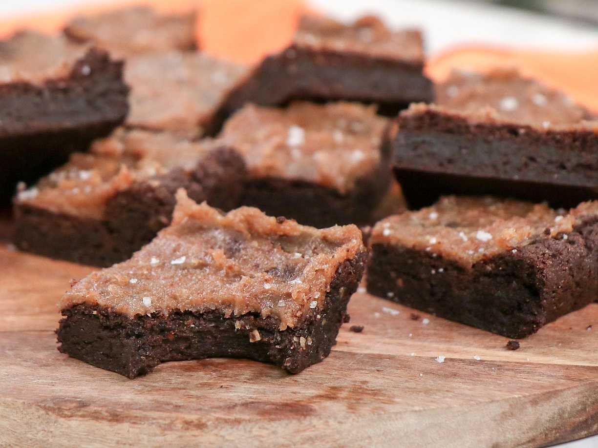 Vegansk brownie på sötpotatis med dadeltopping