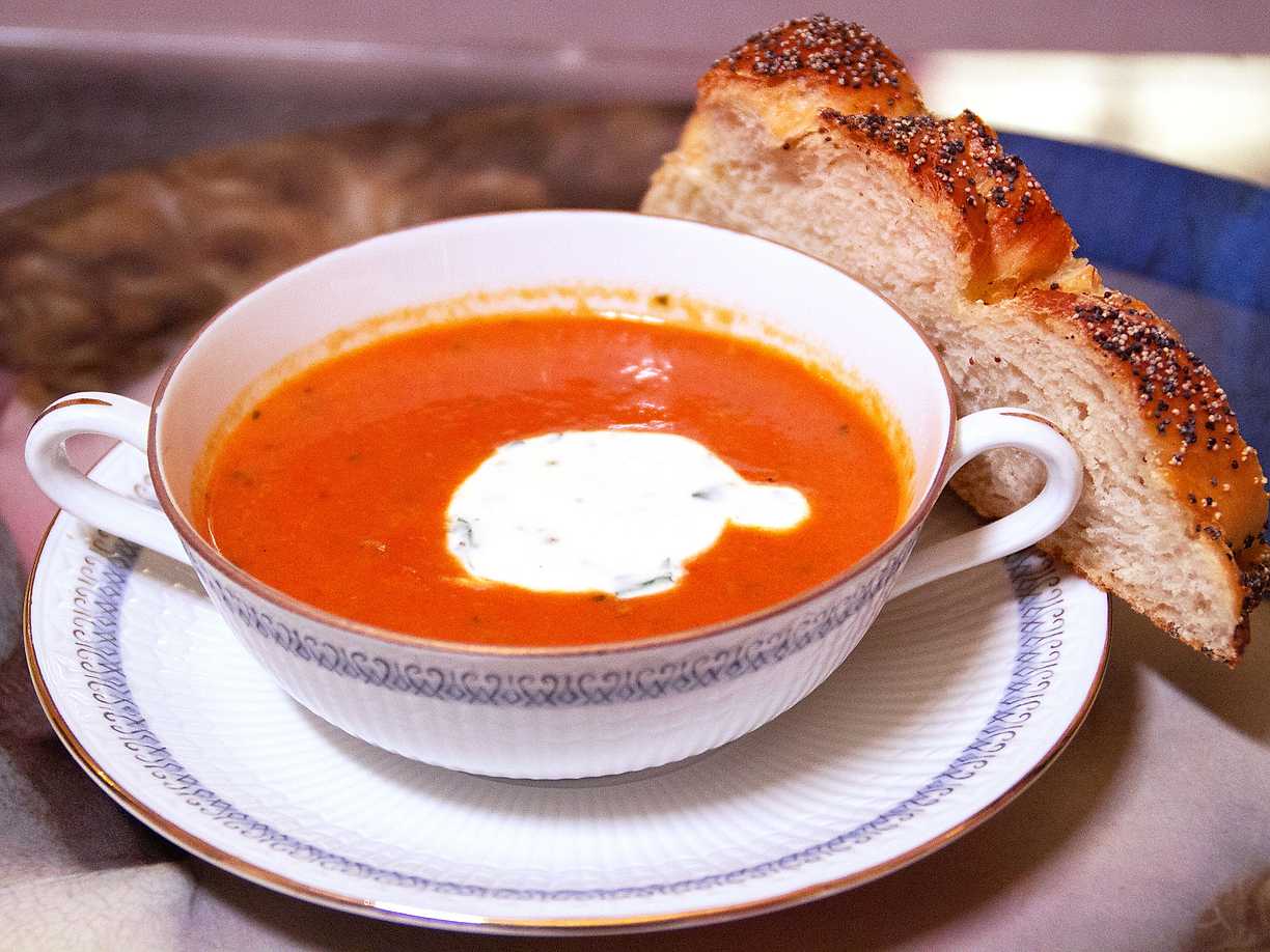 Wictorias vegetariska shabbes-soppa med basilikakräm