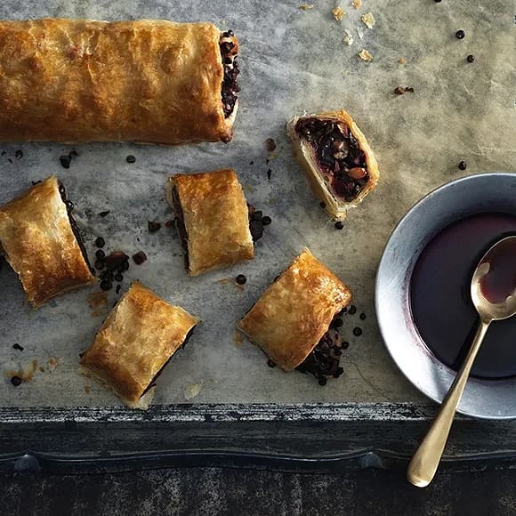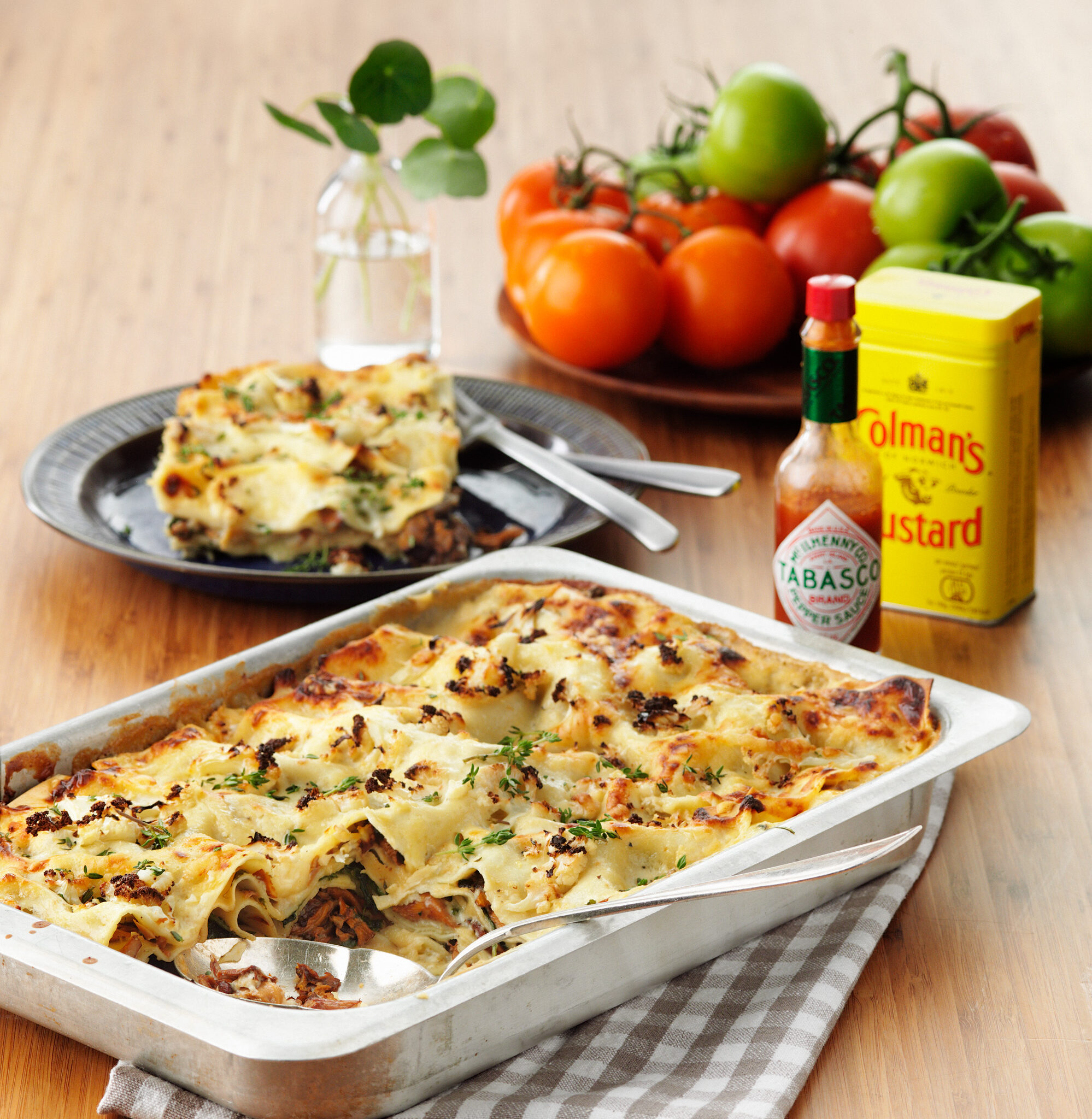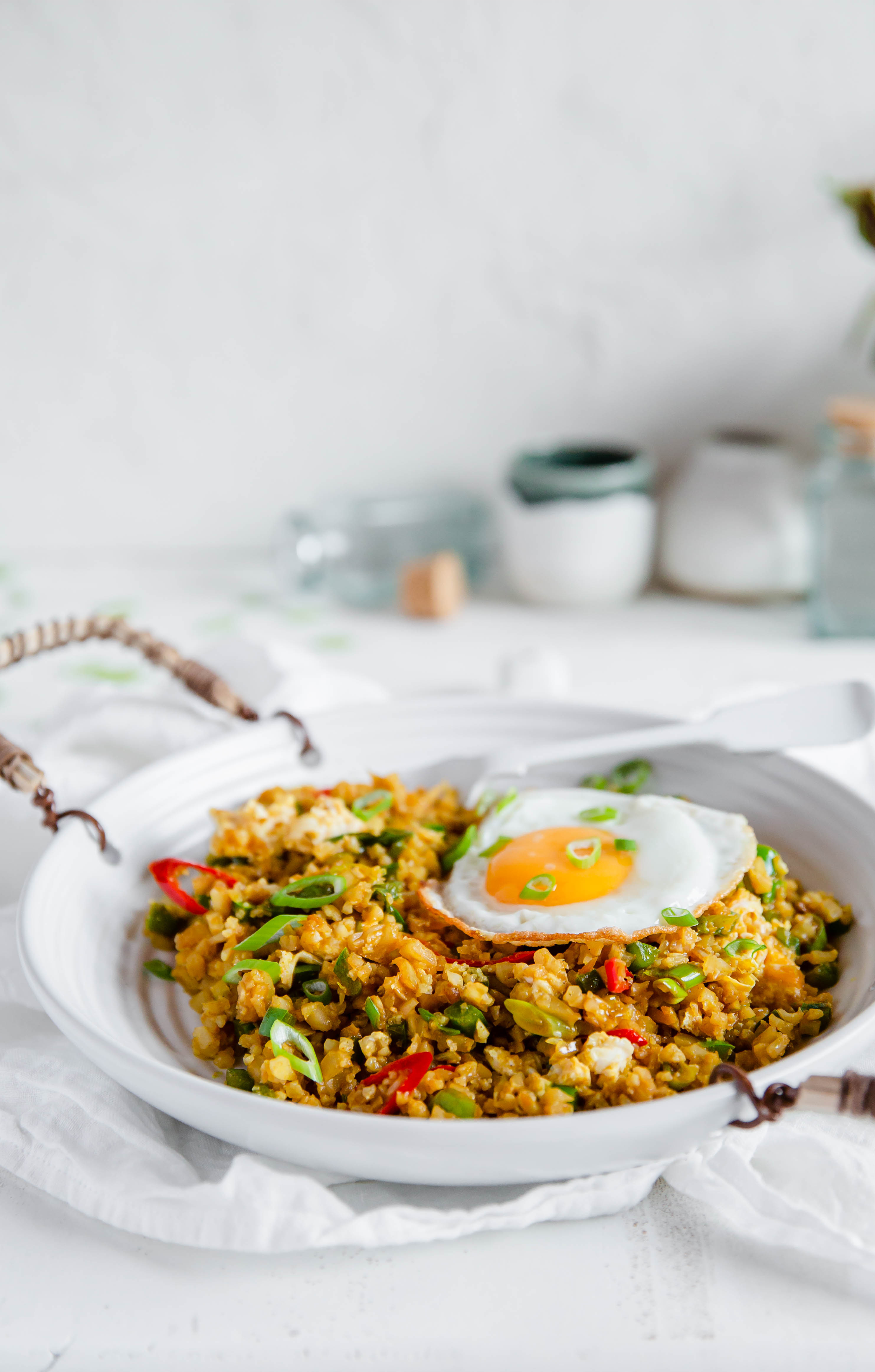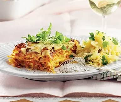 Het linsgryta med kumminstekt vegetarisk pytt och honungskvarg