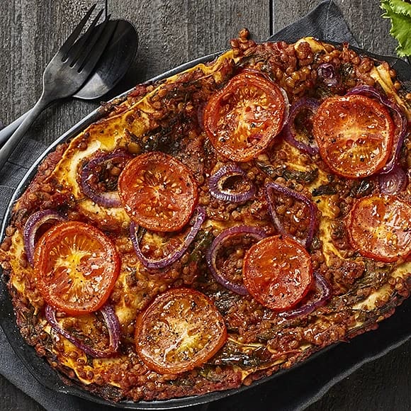 Vegetarisk lins- och tomatlasagne