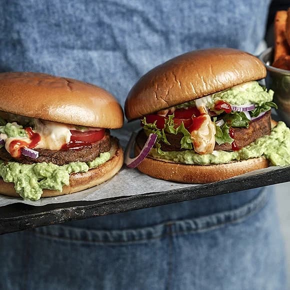 Vegoburgare med potatisklyftor och srirachamajonnäs
