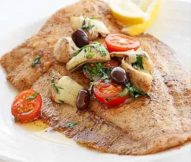 Helstekt sjötunga i vinägrett med medelhavsgrönsaker