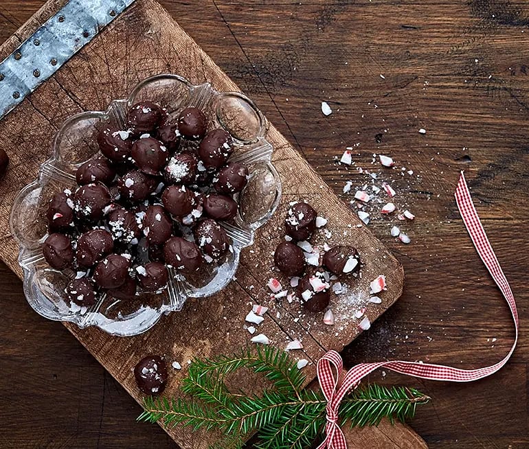 Chokladdoppade vindruvor med polkakross