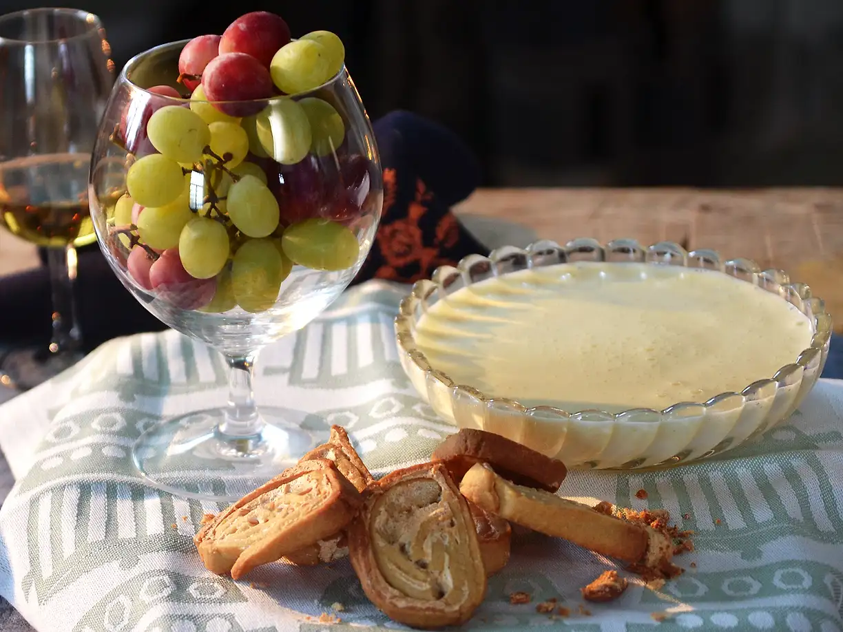 Isade druvor med varm nyslagen zabaglione och jitterbugg