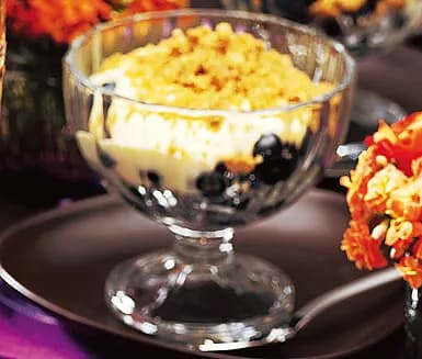 Yoghurtglass med vit choklad, hjortron och nötcrunch