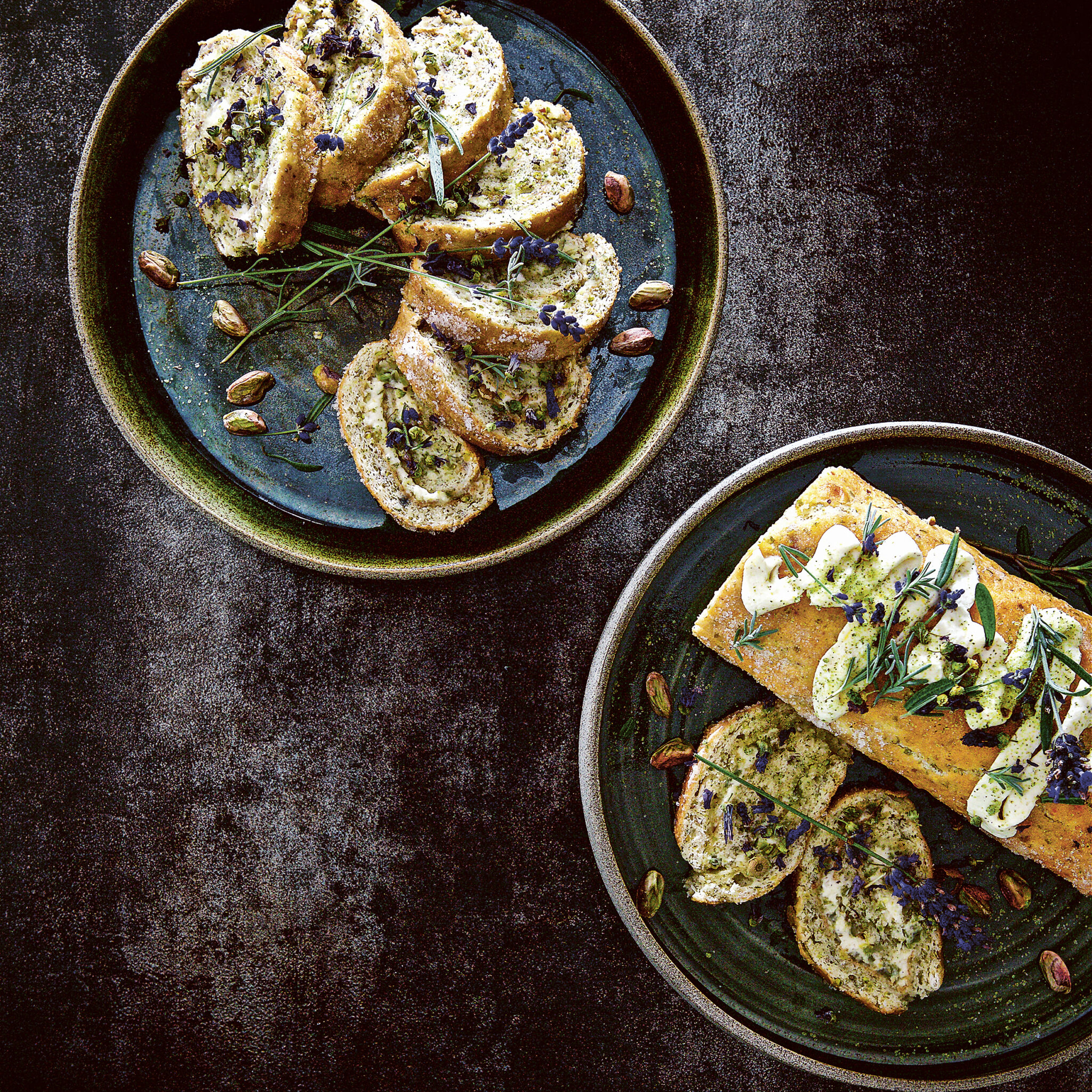 Pistagerulltårta med syrad grädde, vit choklad och citron