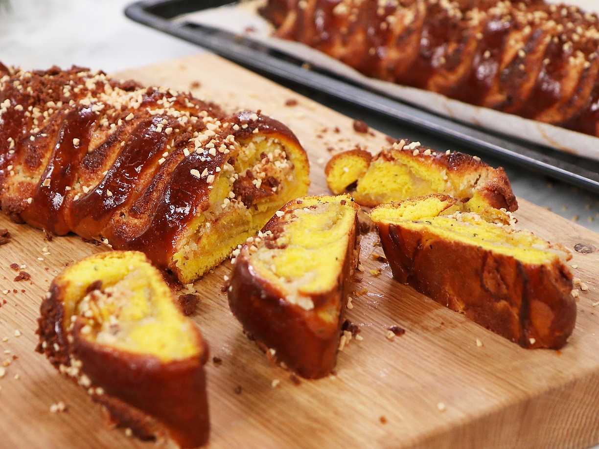 Saffranskladdkaka med vit choklad och passionsfrukt