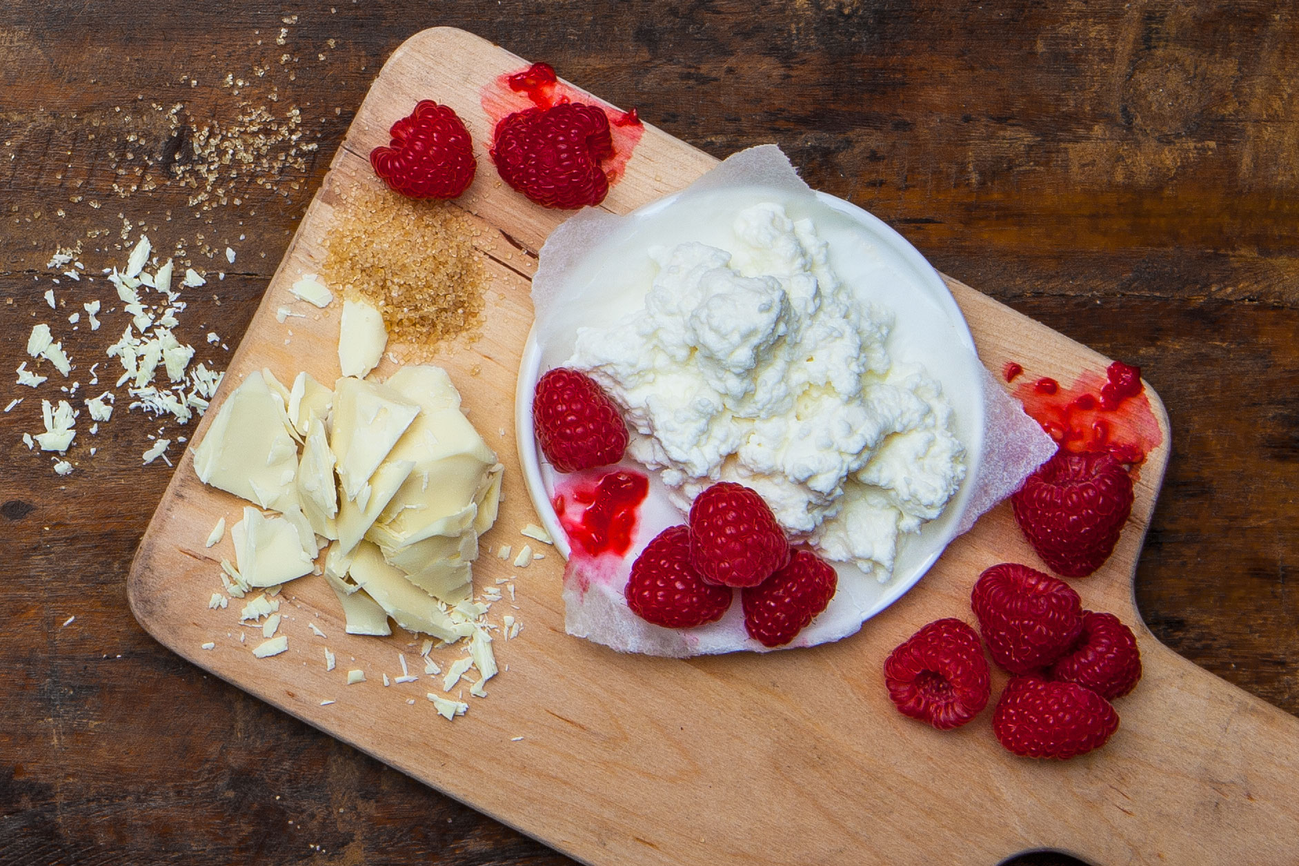 Cheesecake med vit choklad och hallonswirl, Roy Fares recept