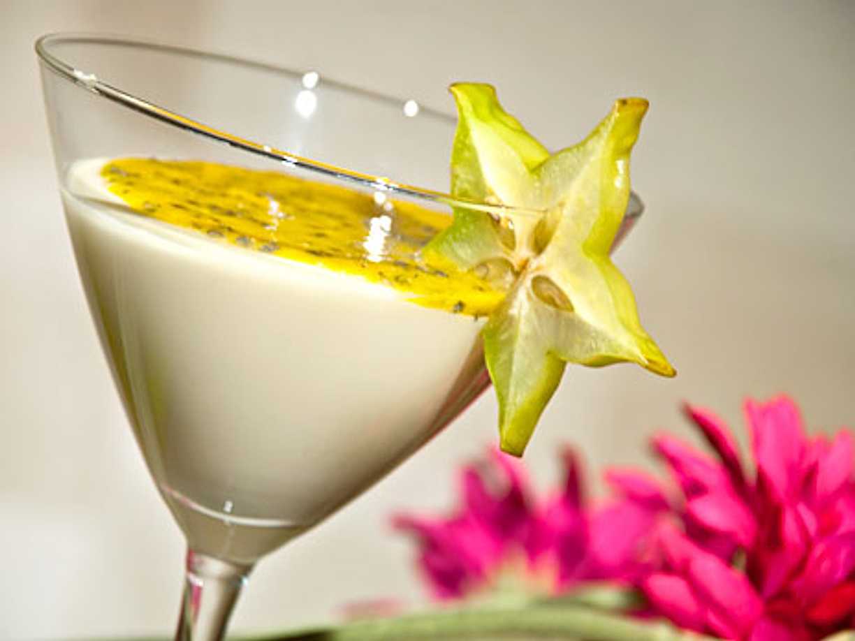 Krämig vit chokladmousse med passionsfrukt