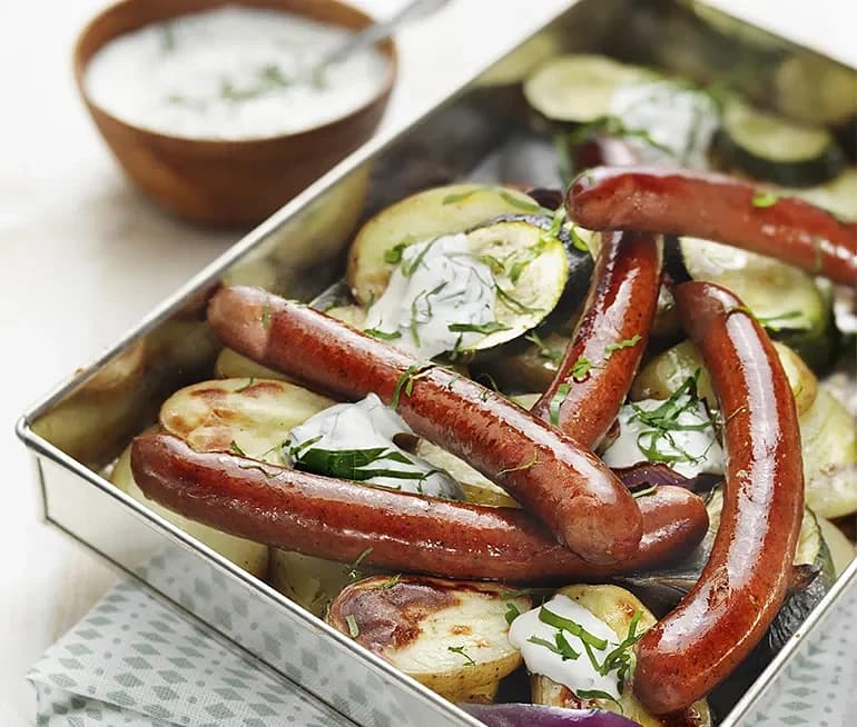 Grillkorv med vitlök- och persiljedipp