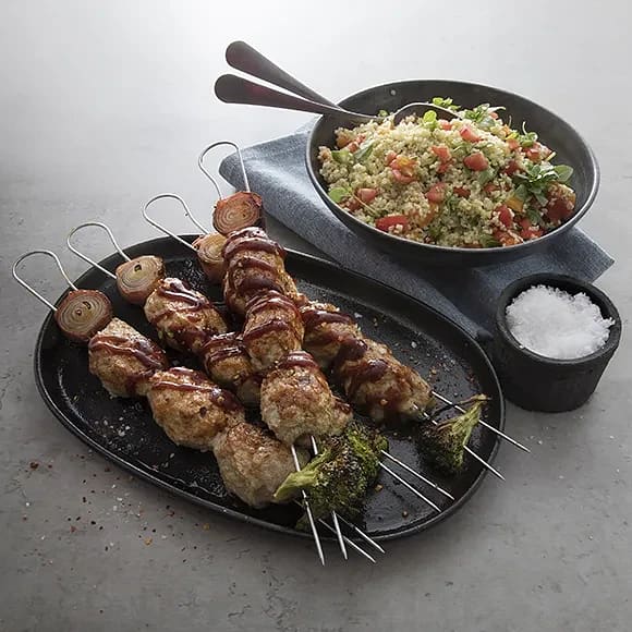 Kycklingkebab på spett med smak av ingefära, vitlök och BBQ