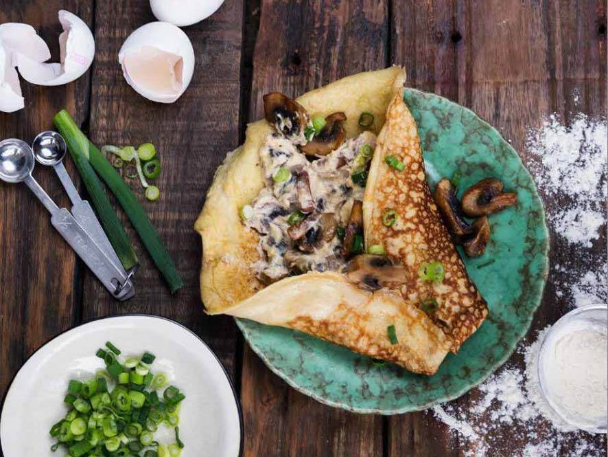 Champinjoncrêpes med vitlök och örter