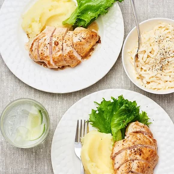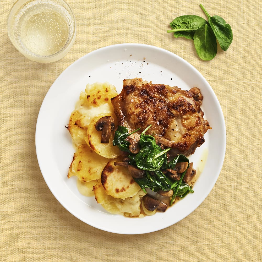 Kycklingsteak med vitlöksstekta champinjoner