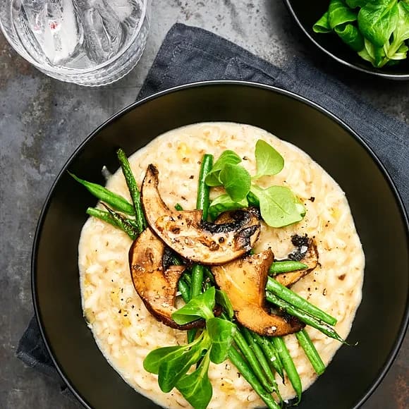 Svamprisotto med vitlöksstekt broccoli