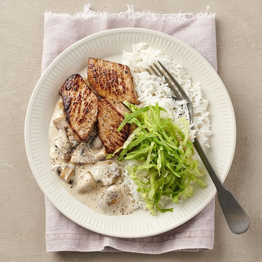 Vitlöksstekt fläskytterfilé med svampsås