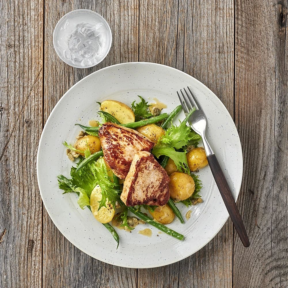 Vitlöksstekt fläskytterfilé med ljummen potatissallad