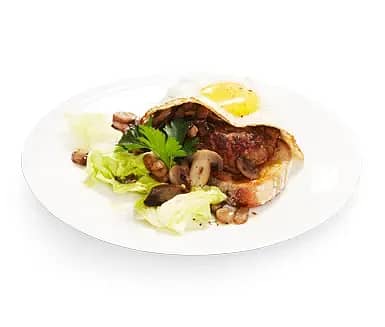 Stekt ryggbiff med chili och vitlöksstekt svamp samt rödvinssås