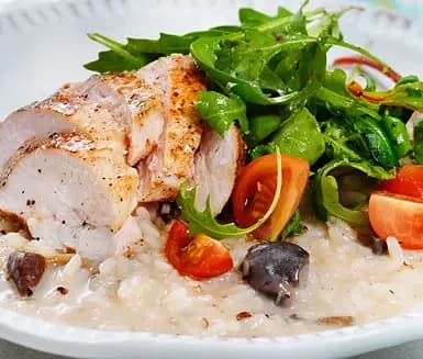 Vitlöksstekt kyckling med krämig svamprisotto
