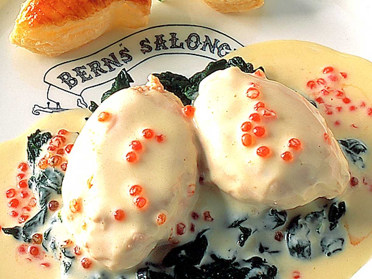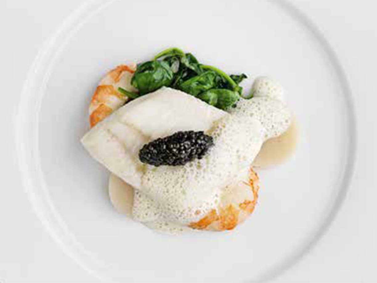 Ångad sjötunga med vitvinssås, löjrom och pocherade ostron