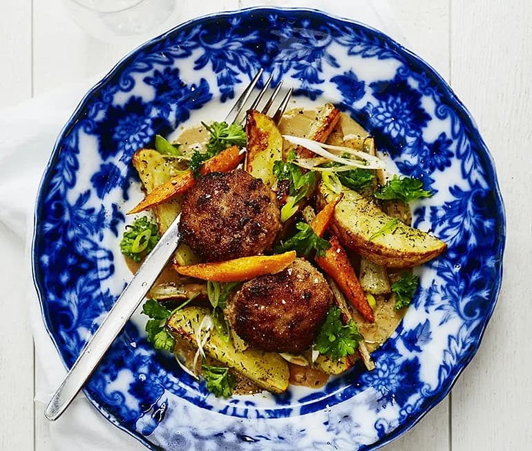 Wallenbergare med timjanrostade svartrötter