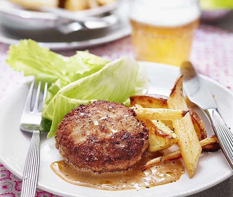 Wallenbergare med potatistäcke och sirap
