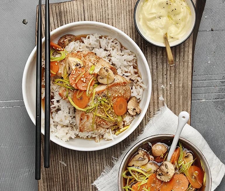 Kalkonfilé med sojamarinerad svamp och wasabimajonnäs