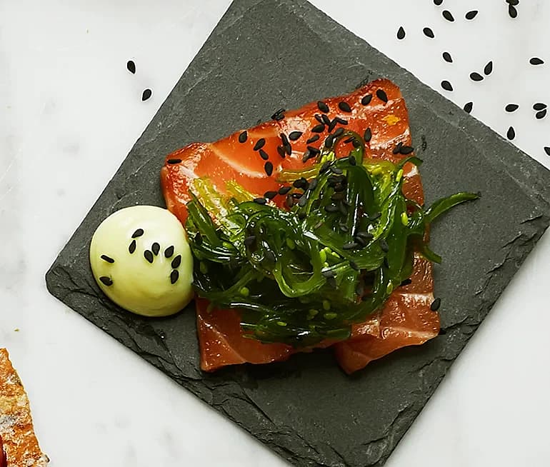 Ingefärsgravad lax med nudelsallad och wasabimajonnäs